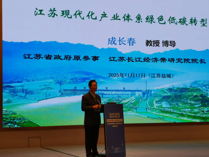 11月17日,江苏省社科界第十九届学术大会区域专场3在盐城师范学院举行。本次会议围绕“聚焦绿色低碳拓展发展新空间”核心议题,汇聚省内外知名专家学者和相关部门的百余位代表参会,共同探讨江苏绿色低碳发展的理论创新与实践路径。研究院院长兼首席专家成长春教授应邀出席并做主旨报告。